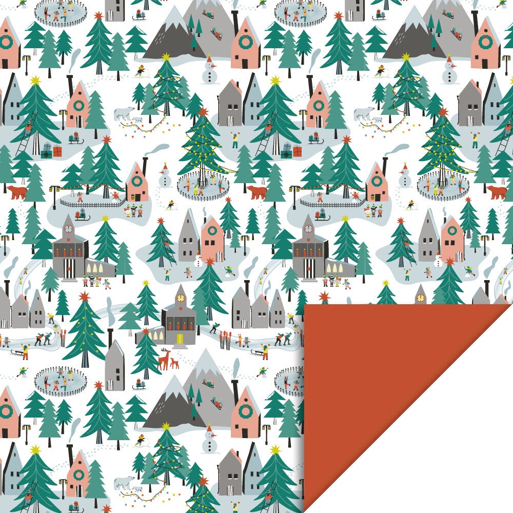 Inpakpapier - X-mas - Village - orange