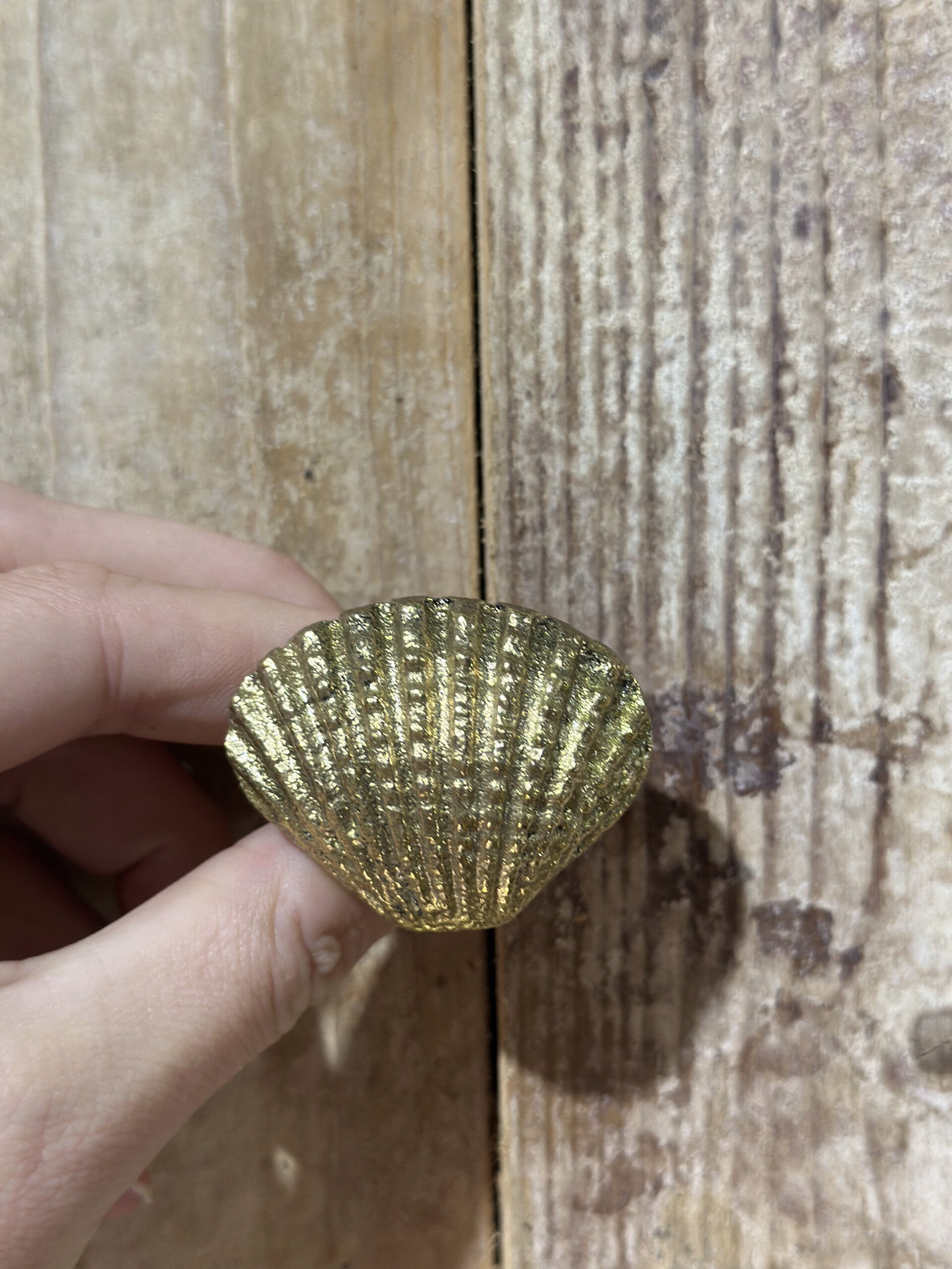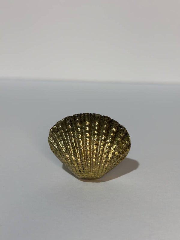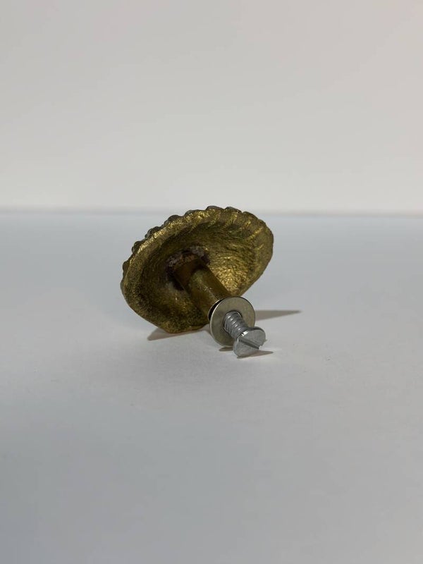 Een pareltje is deze messing meubelknop in een schelpvorm.