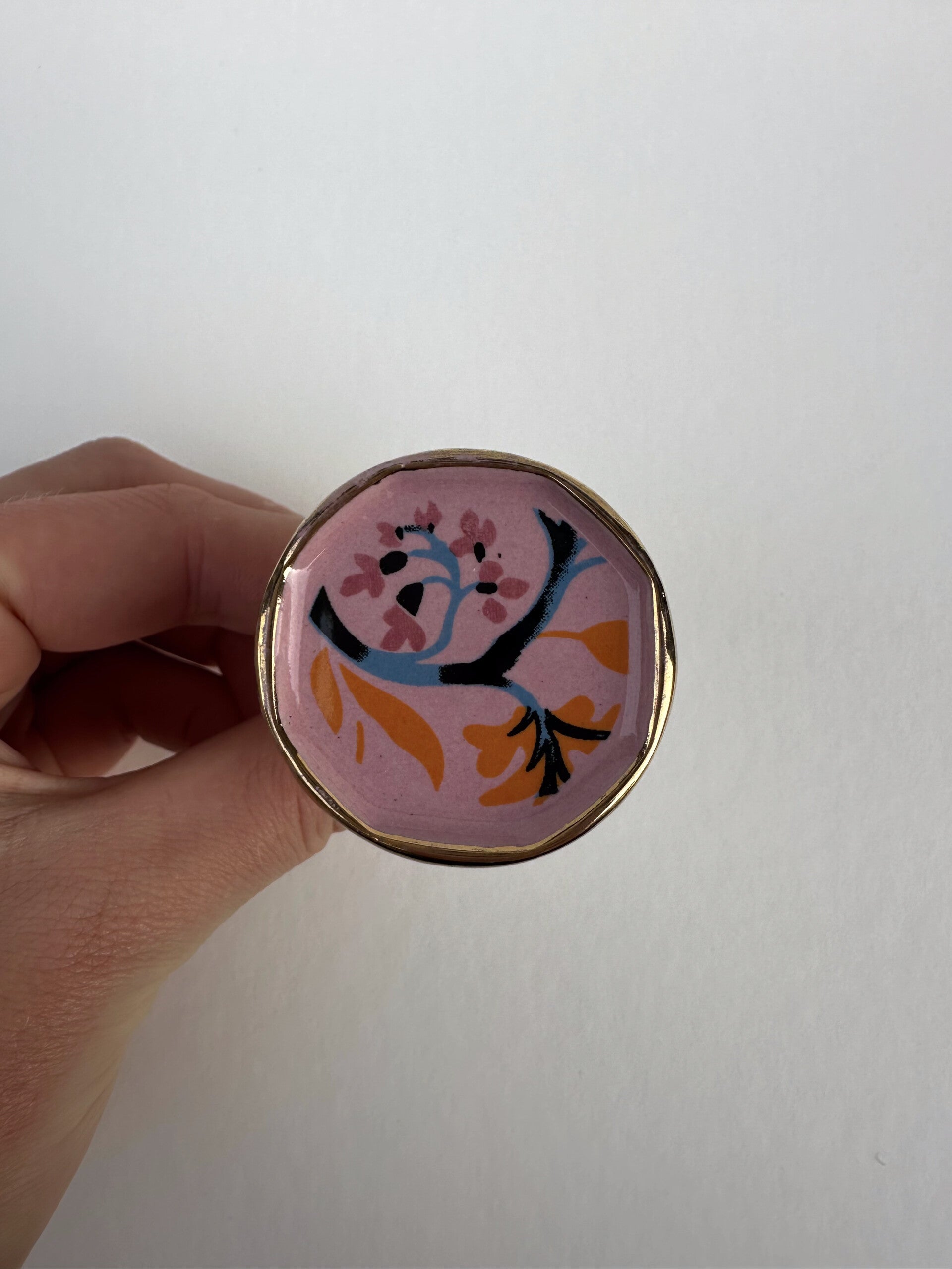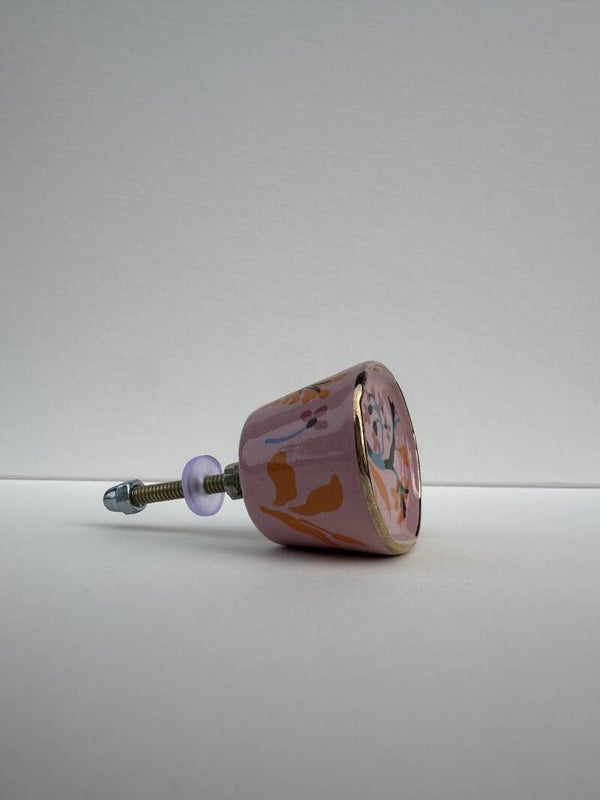 Meubelknop - keramiek roze bloemmotief wholesale